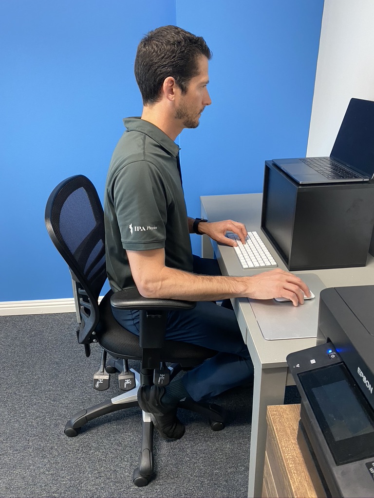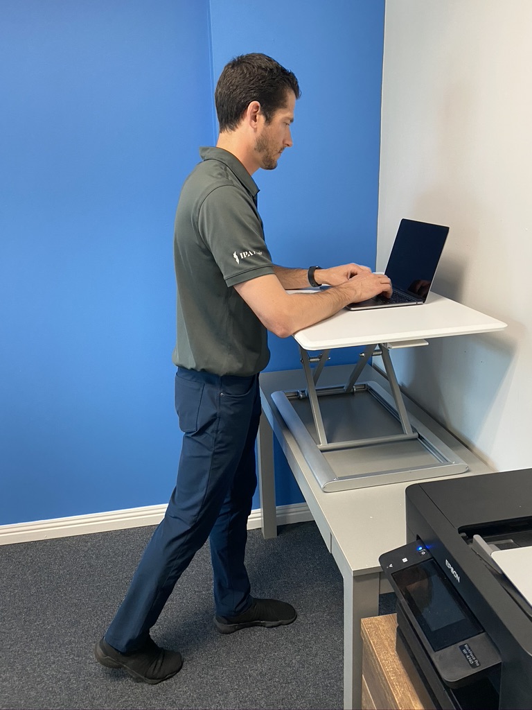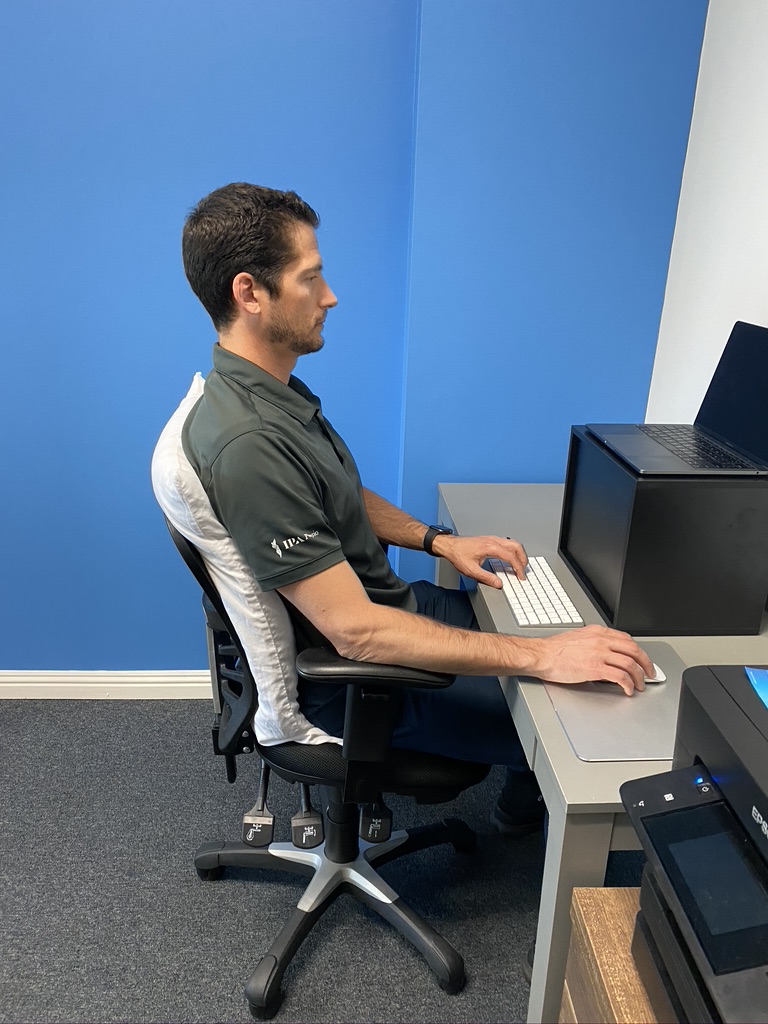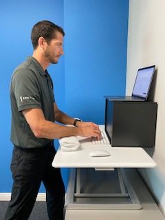 Sometimes it is impossible to create the perfect ergonomic workstation setup. However, small adjustments can make a big difference. Simply do your best with the information we have provided above. Always err towards a position that feels most comfortable to you and reduces any pain you may be experiencing. Ultimately, ergonomic setups are extremely individualized, and an in-person evaluation is the best way to ensure optimal outcomes. Please reach out to one of our clinics with any questions you may have.