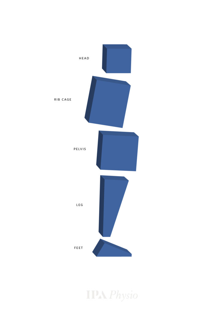 Notice in this posture the rib cage is aligned vertically on top of the pelvis and the rib cage is also not tipped forward or backward. Imagine pressing straight down through the shoulders. We would not expect to see any buckling – the load will be transferred to the feet and into the floor (where movement will be generated from). Spinal segments will be loaded equally as the force is distributed, reducing the likelihood of injury and degeneration.